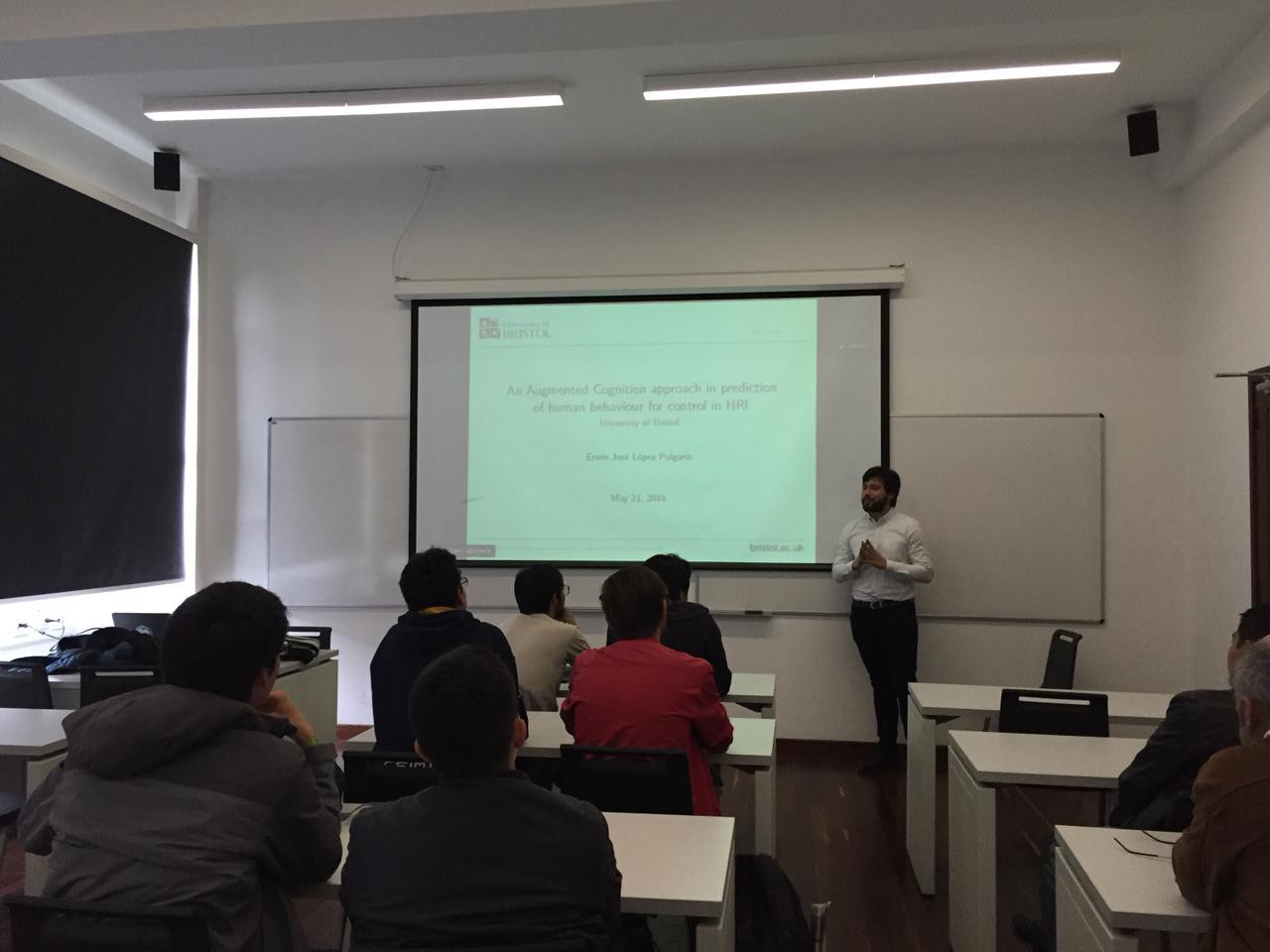 It was a shortened version of a previous talk I had for the DC Seminar in University of Bristol. I was lucky enough to get a full room of students and lecturers to share some ideas about HRI and its importance for the future of autonomous vehicles.